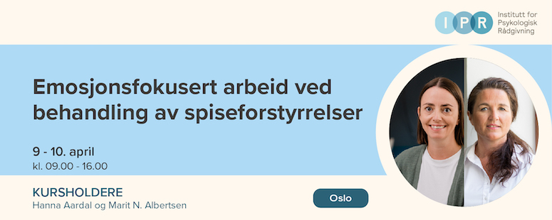 IPR inviterer til et todagers kurs for psykologer, leger, terapeuter og andre som jobber med spiseforstyrrelser både individuelt, i grupper og miljøterapeutisk og med familier. En trenger ingen forkunnskaper i emosjonsfokusert arbeid for å kunne delta på kurset.